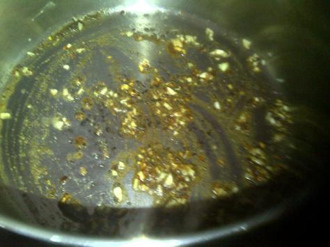 I heated a couple teaspoons of grapeseed oil in a pan – not much, just enough to start off the spices. I added the garlic and mustard seeds first, and after they had cooked for a few minutes, put in the pepper flakes and cumin.