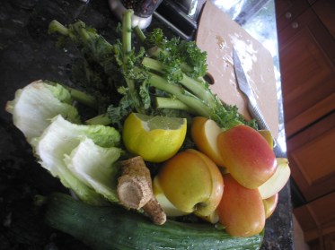 One of my favorite juices is incredibly simple – kale, romaine, apple, ginger and lemon. Red apples are good, as are green ones.