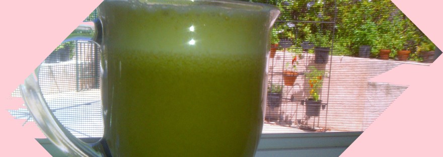 The result was a nice, sorta murky light green that tasted great. Nice mild green flavor from the romaine, sweetness from the apple, and a kick at the end from the pepper. I should have added some lemon ~ that would be perfect!