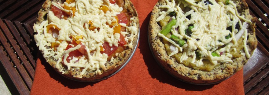 They still tasted delicious ~ a yummy blend of creamy hummus, fresh vegetables, and vegan cheese, on an herby almond-flour based crust. They just weren’t pizza :-). So that recipe is still to come, but we can definitely enjoy these in the meantime!