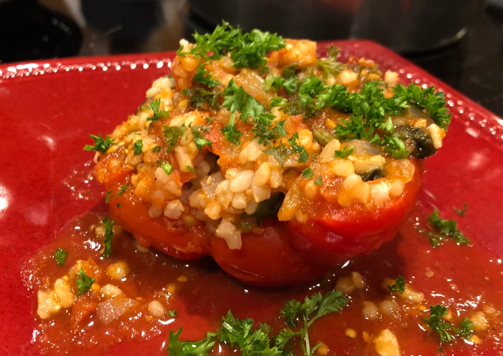 Colder weather means warm comfort food! I never really loved stuffed peppers, but I love this recipe! They are delicious, and a perfect way to get in lots of veggies and other whole foods.
